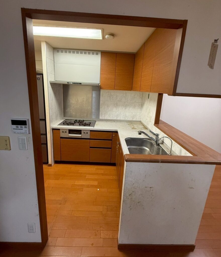リビング改装に伴い、L型キッチンをI型の対面式キッチンへ入替えました。