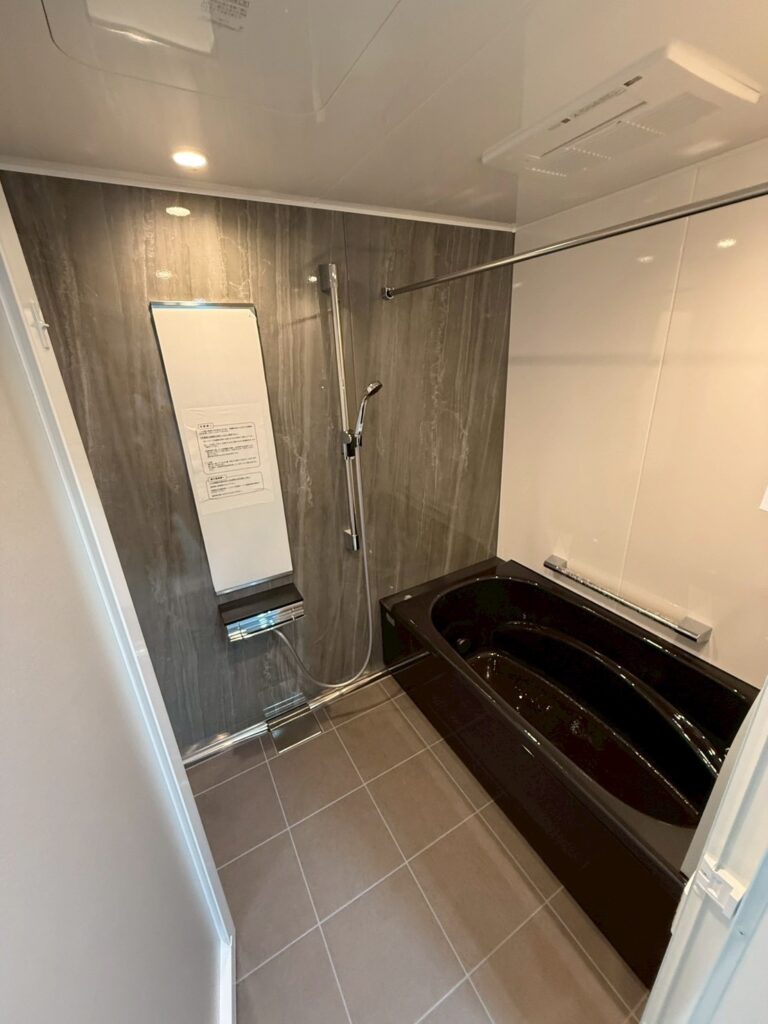 ブラックの浴槽に、アクセントパネルを添えて・・