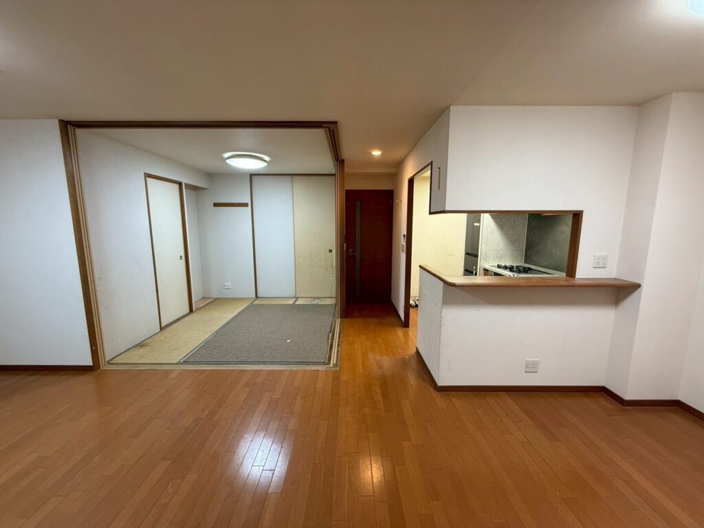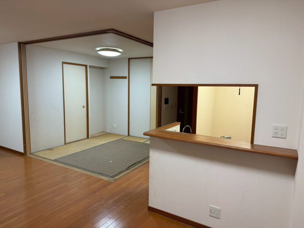 出入口の垂れ壁を撤去することで、リビングとつながりがうまれ解放感のある空間へ