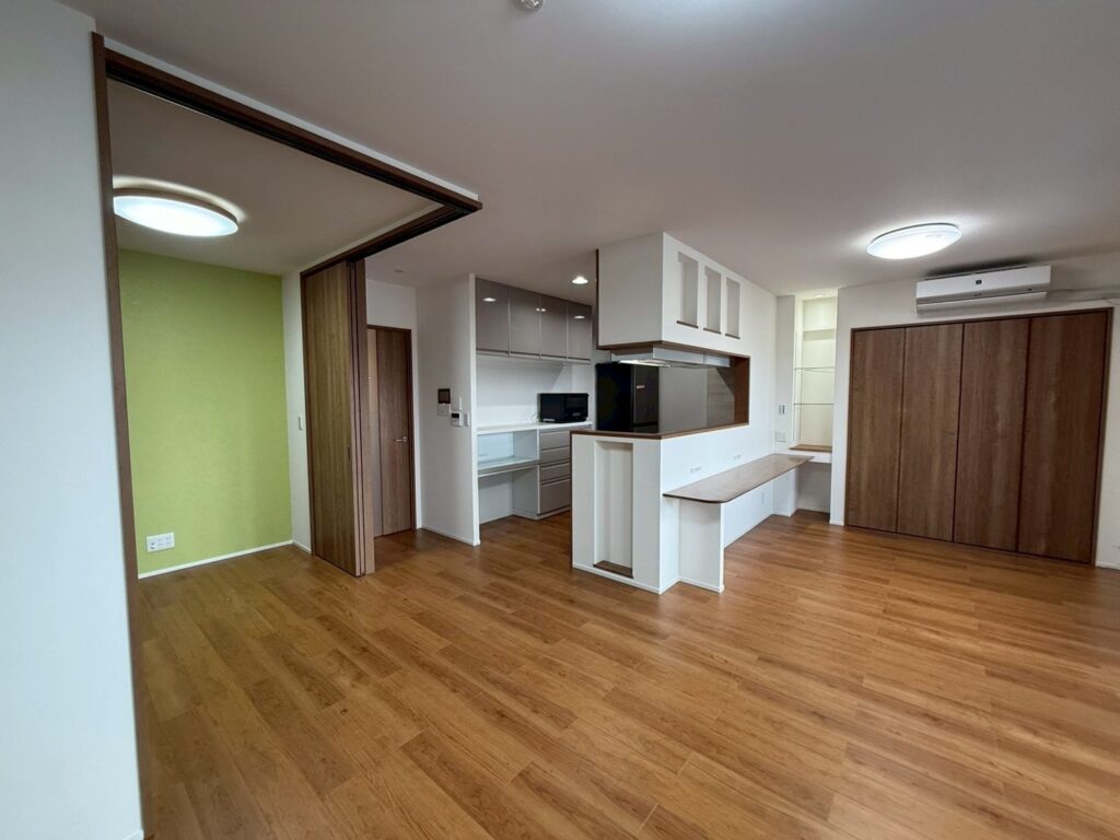 そして和室を洋室へリノベーションして、リビングとゆるやかにつながる可変型の空間に