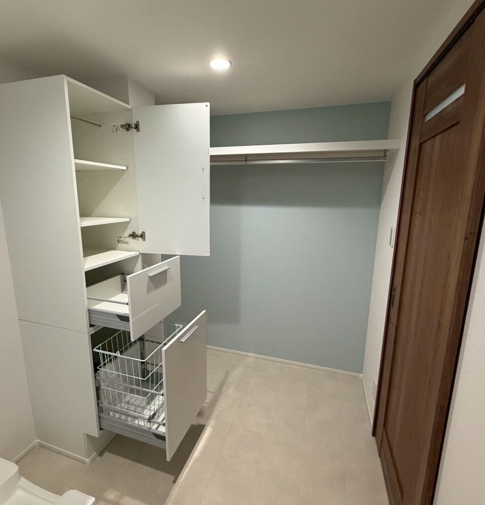 家事動線を最優先にデザインすることで、洗濯・身支度・収納が一連の流れで完結すると、